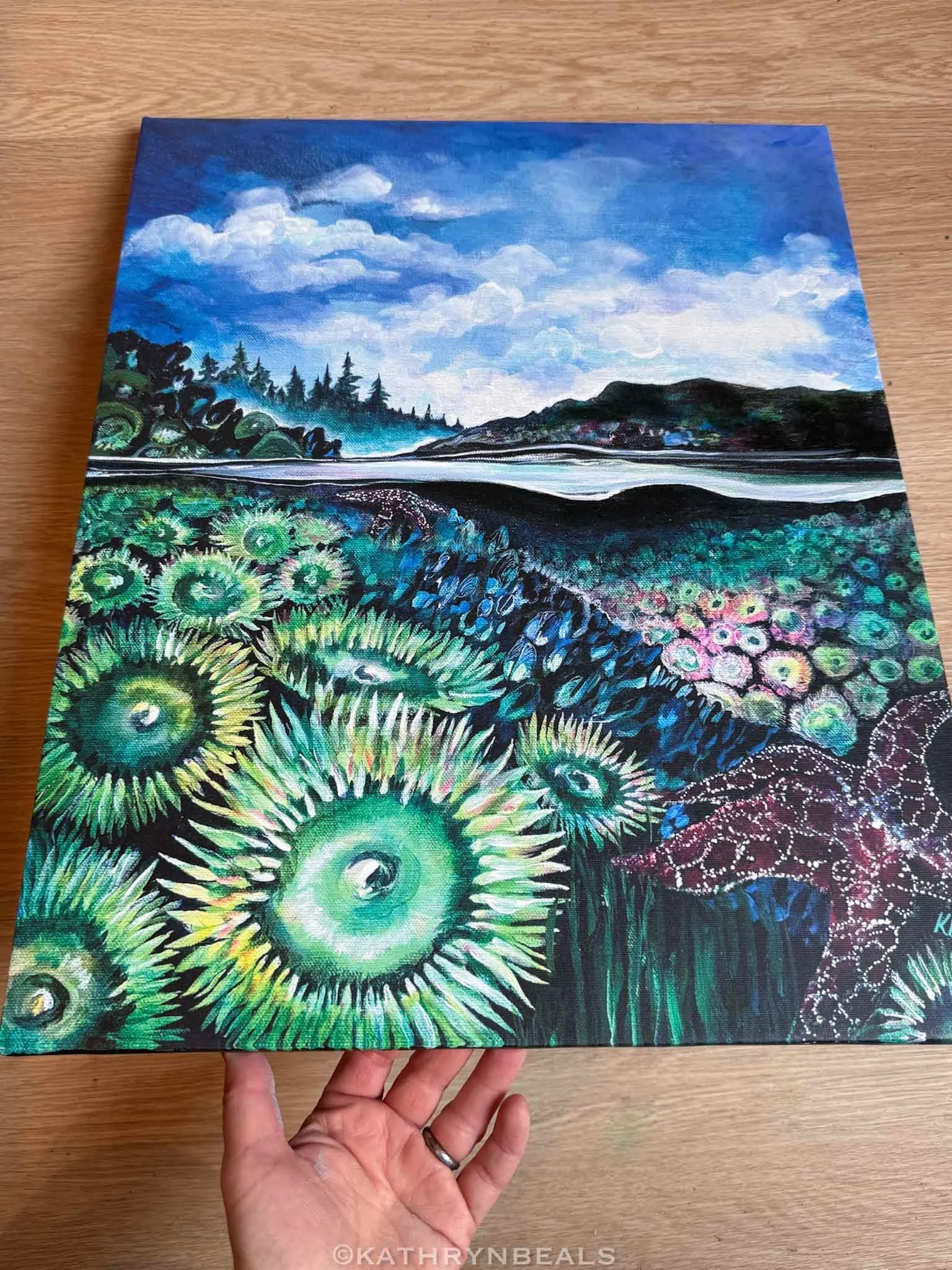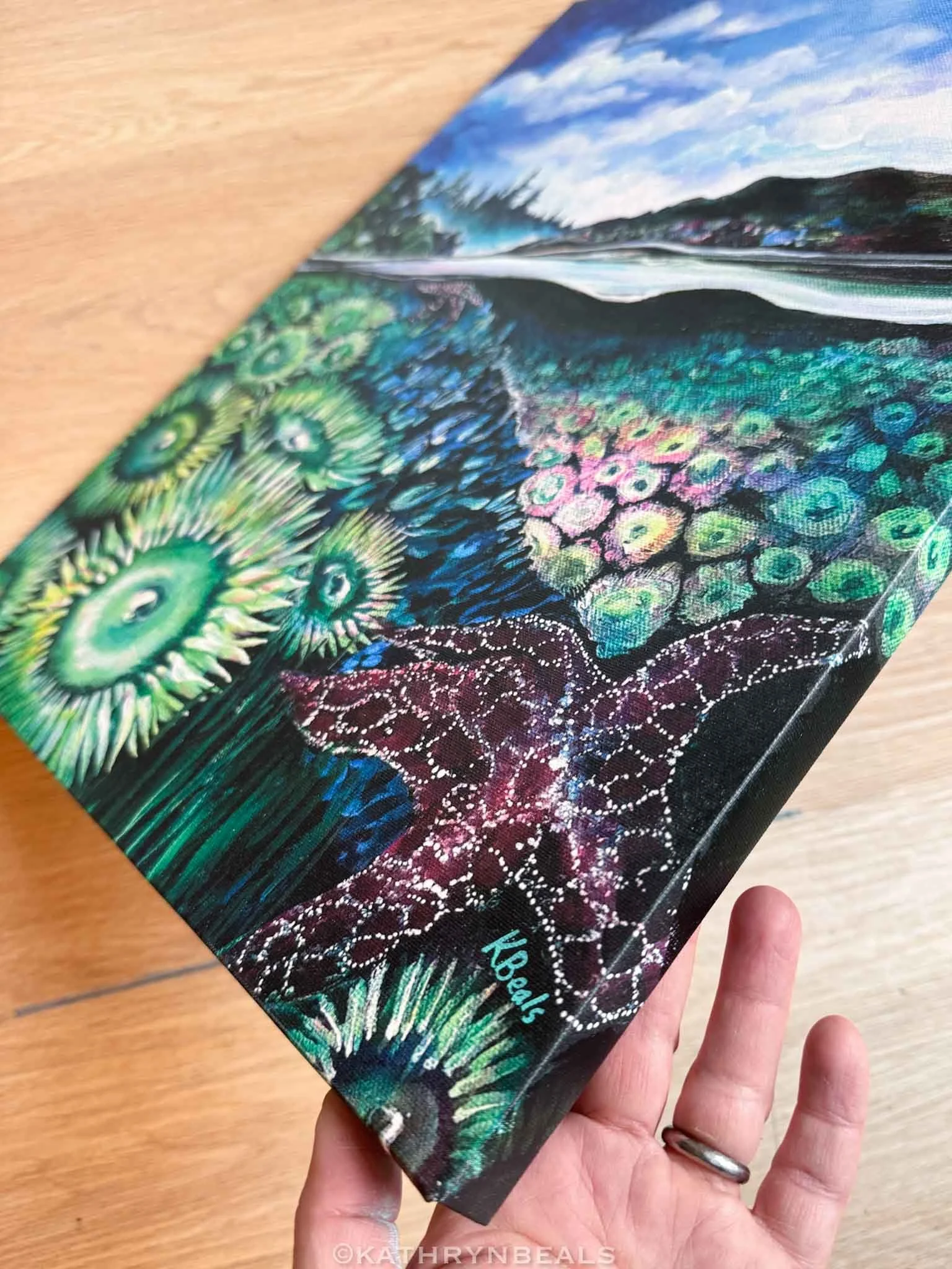 This is a hand-embellished canvas print of Kathryn’s painting Secret Garden, inspired by Vancouver Island. The print measures 16”x 20” and is hand retouched and signed by the artist. Printed in Canada. Shop other prints here.
